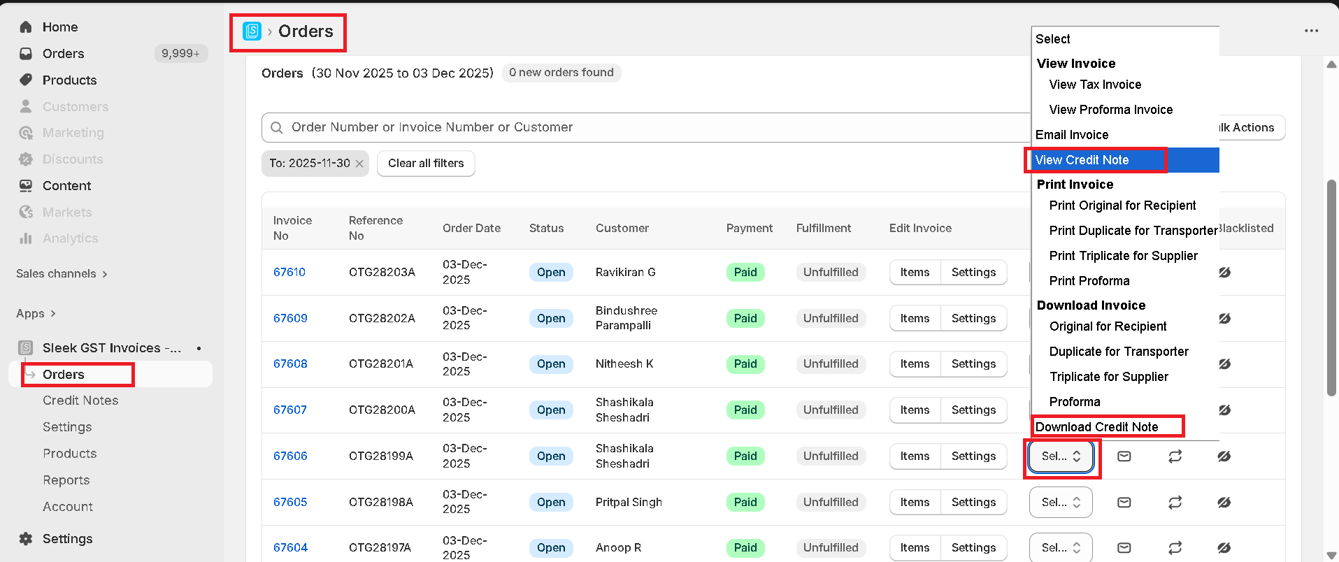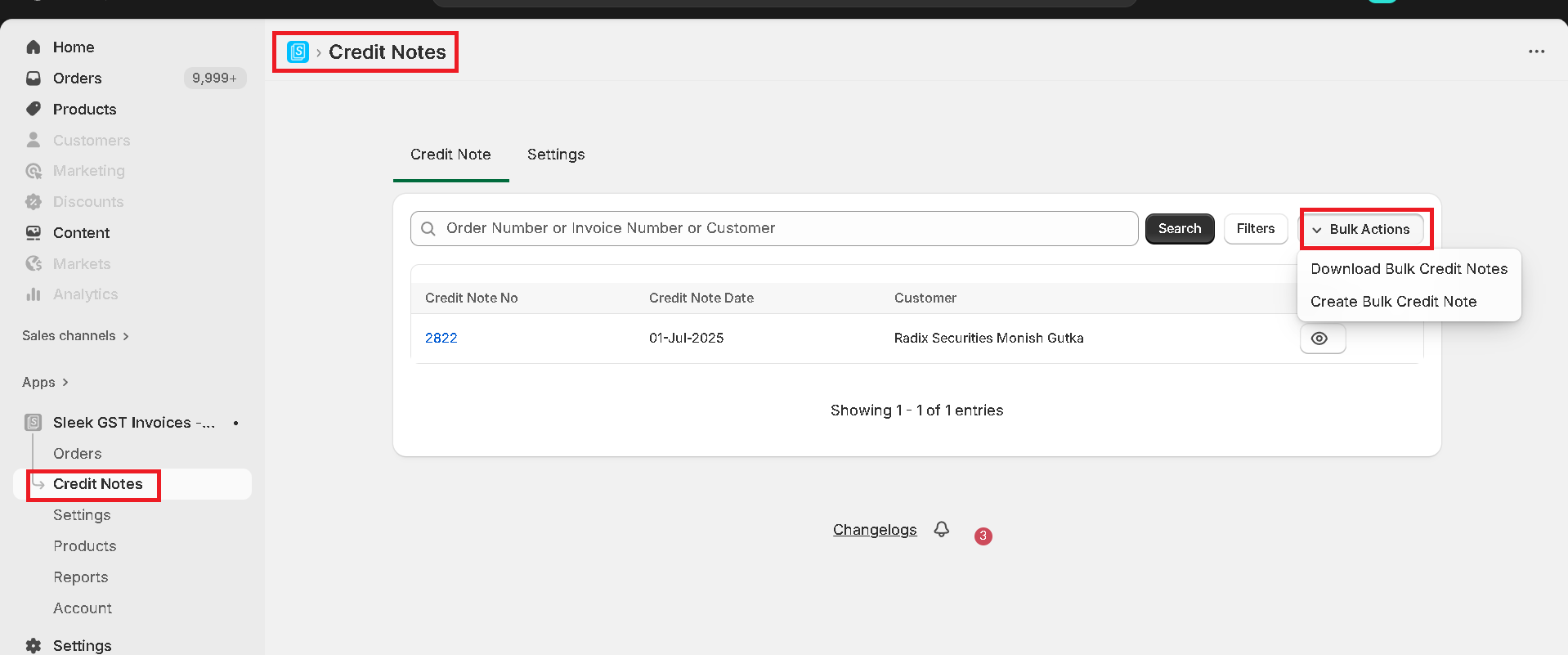 With the Sleek App, you can create credit notes individually or in bulk and also download them as needed.